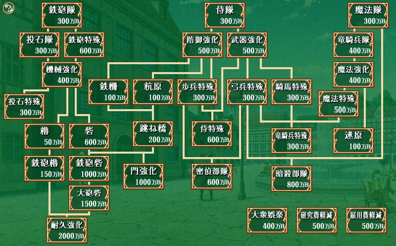 | 魔法強化 | 400 | 魔法隊、竜騎兵隊の攻撃力が15上昇 | |